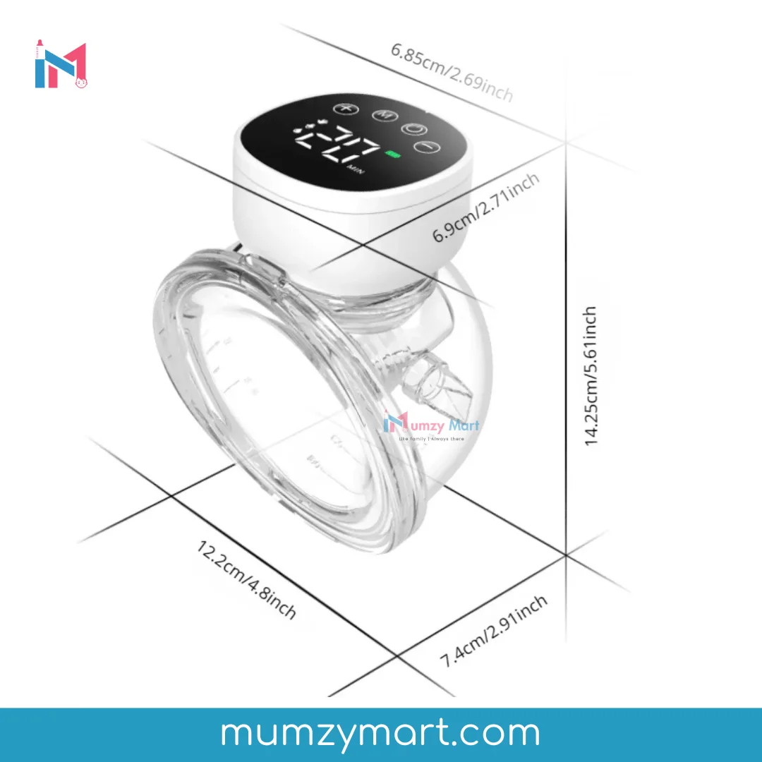 A wearable, hands-free electric breast pump designed for active/pumping mothers, offering portability, multiple suction modes, and a quiet motor. The pump is meant to fit inside a bra discreetly, allowing multitasking while expressing milk. It emphasizes comfort (soft cushions, BPA-free materials) and convenience (rechargeable battery, no forward-leaning posture needed).