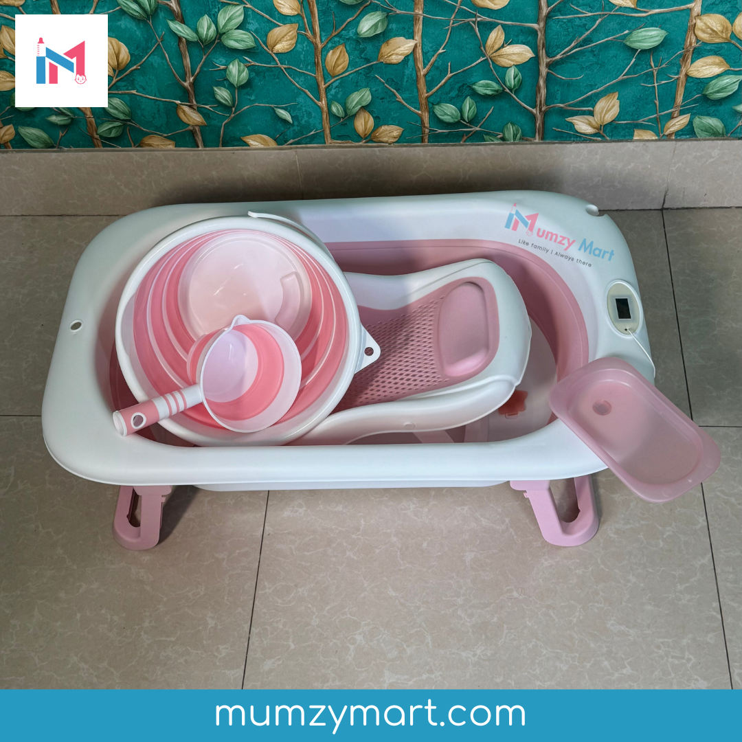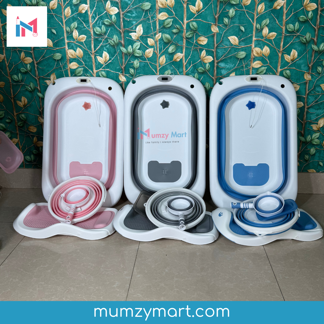Make bath time safe, comfortable, and convenient with this Foldable Baby Bathtub Set, thoughtfully designed for newborns and toddlers. The bathtub features a sturdy yet lightweight structure with a space-saving foldable design, making it ideal for modern homes and travel. The tub includes a soft ergonomic baby support insert that helps keep your baby secure and comfortable during bathing. Its smooth edges and non-slip base ensure added safety, while the durable, BPA-free materials provide peace of mind for parents. This complete set comes with collapsible accessories, including measuring cups and a flexible drain plug, allowing easy water control and simple storage after use. The bathtub folds flat in seconds, making it easy to store in small spaces.