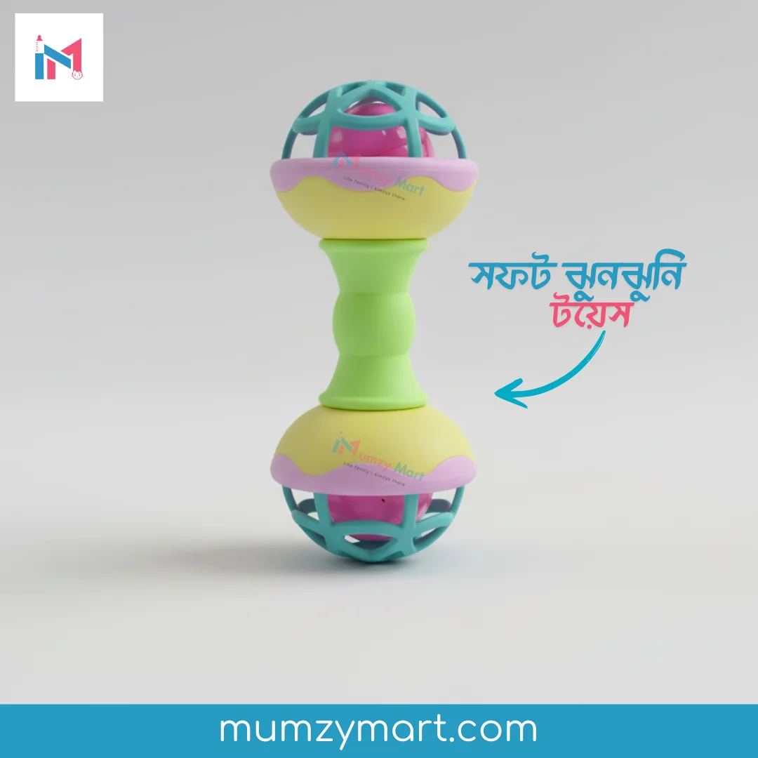 Crafted from high-quality, non-toxic, BPA-free materials, the Jhunjhuni rattle is lightweight and perfectly sized for tiny hands to grip, shake, and play. The rounded edges and soft design ensure complete safety during playtime, making it an ideal choice for newborns and infants.